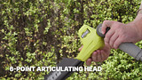 The blades have a 16mm diameter cut capacity to power through and shape thick bushes. Their 40cm length is great for creating straight edges along the tops and sides of formal hedges. Adjust the 6-position articulating head to trim from various angles.